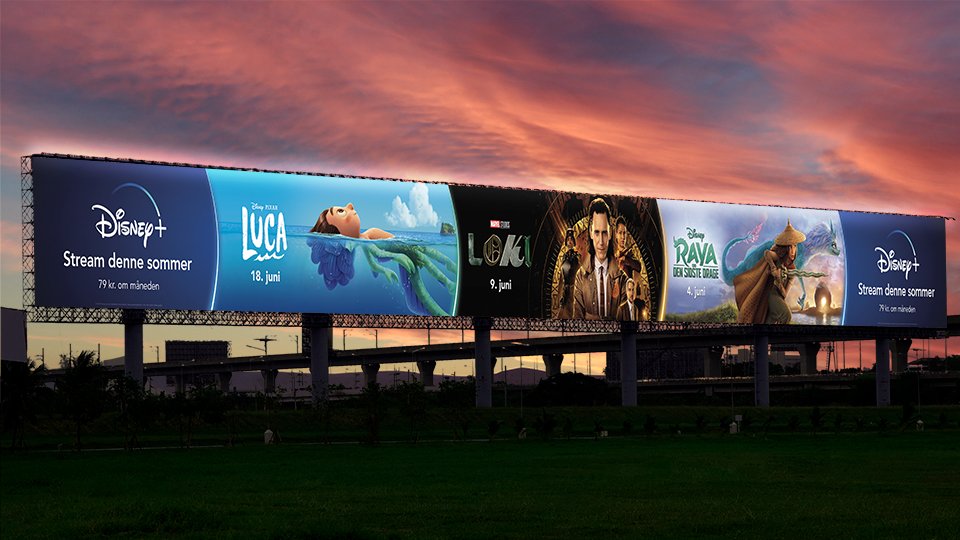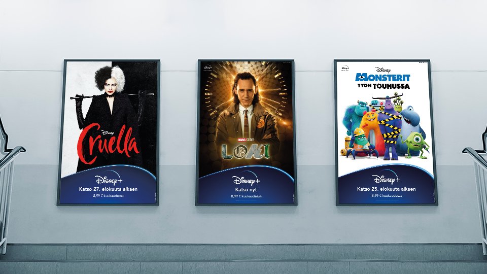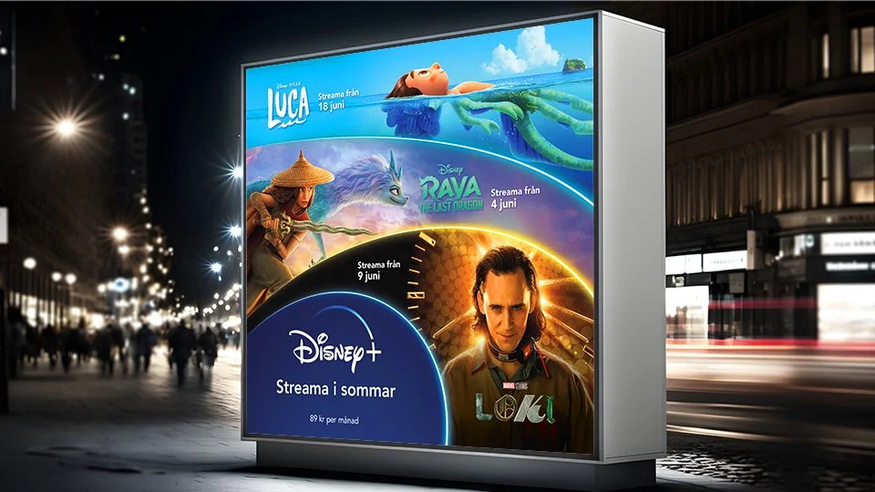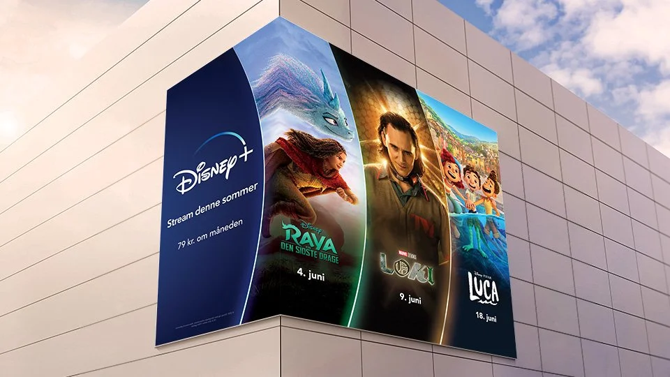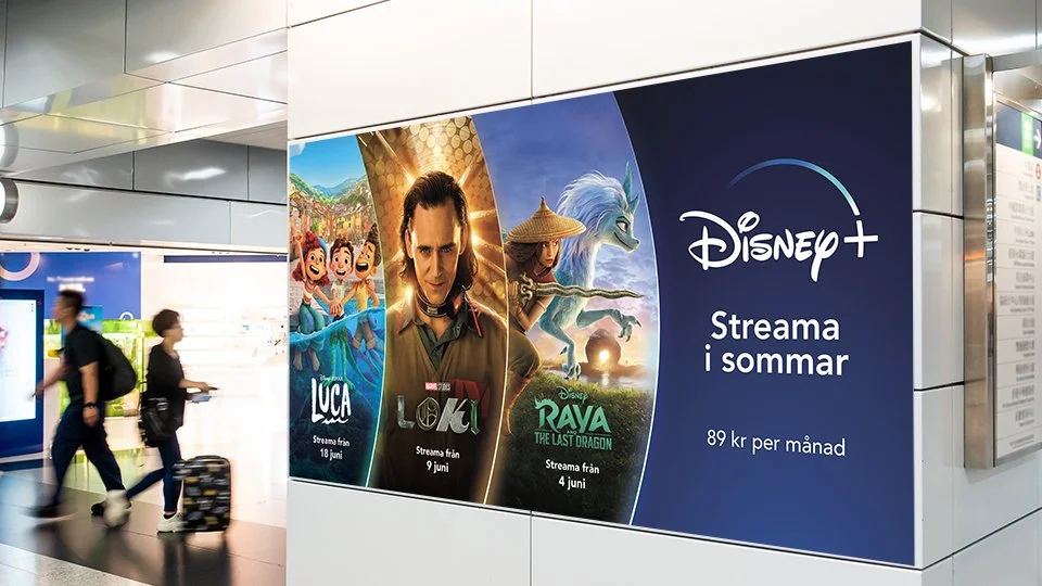 Production of a variety of Disney+ out-of-home marketing assets for the Nordic markets during 2021. The project included designing out-of-home print advertisements, as well as motion design and production for digital out-of-home advertisements.