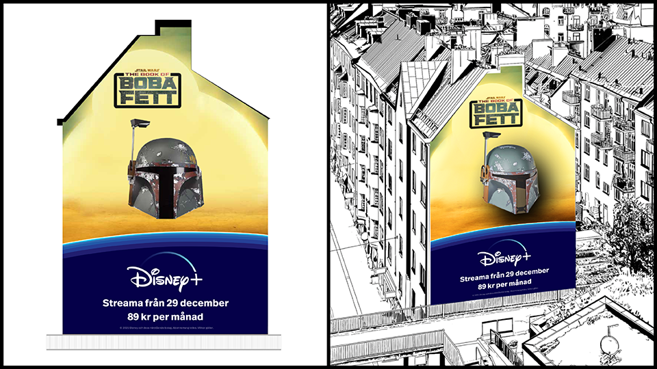 Asset production for a bespoke wall projection in Stockholm, promoting the launch of Star Wars' The Book of Boba Fett series. This project included video compositing and VFX editing.