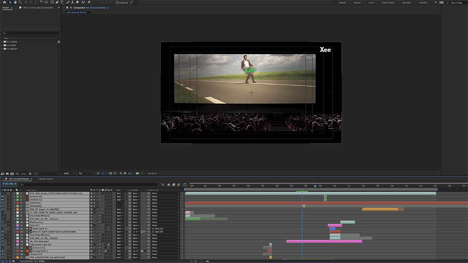 TV commercial production to promote Xee Channel's movie programming offer, involving motion graphics and VFX productions. The commercial theme revolves around the unnecessary censoring of innocuous movie clips, resulting in completely new interpretations of the scenes.